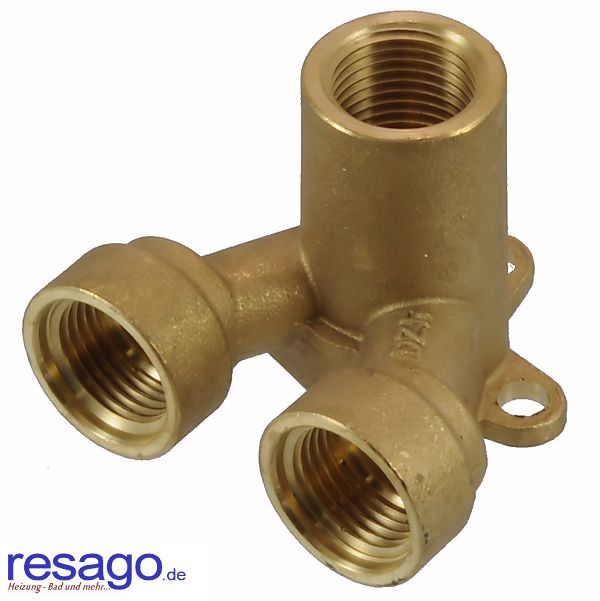 Doppelwandscheibe aus Messing mit 3 Innengewinden 1/2" (DN 15).Für Sanitär und Heizungsinstallation.
