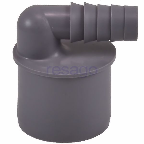 AIRFIT HT-Anschluss-Schlauchwinkel mit Schlauchanschluss 19 und 21 mm.Passend an HT Abwasserrohr DN 50.Zum einfachen Schlauchanschluss von Wasch- oder Geschirrspülmaschinen,Kondensatabläufen oder Spülwasser aus Entkalkungsanlagen.Optimaler Übergang vom Schlauch zum Abflussrohr.Passend in Rohrende/Formstücke mit Muffe.Aus PP nach DIN 4102/131.Heißwasserbeständig bis 90°C.