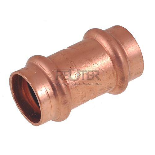 Kupfer Pressfitting Muffe ,Presskontur "V".Für Kupferrohr nach DIN EN 1057.Geeignet für Heizungsanlagen,Trinkwasseranlagen,Sprinkler- und Löschwasseranlagen,Druckluft, Inerte Gase,Regenwasser-Nutzungsanlagen,Solar-Flachkollektoren (in Verbindung mit FKM -Dichtelement) und Kühlwasserleitungen.Kann u.a.mit folgenden System Pressbacken gepresst werden:Sanha NiroSan, Comap Sudopress Cu, GF+Press FIT,Viega:prestablo-profipress-profipressG-profipress THERM-sanpress.