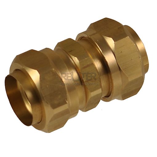 Metallisch dichtende Messing-Verschraubung, Kupplung mit beidseitigem Flexrohr-Klemmanschluss zum Verbinden von Solar-Edelstahl Flexrohren.Verschraubungen können ohne Spezialwerkzeug und ohne Dichtungen montiert werden.Sie sind geeignet für alle Solar-Edelstahlflexrohre.( 2 in 1, 1 in 1 und für Solar Flexrohre blank).Flexrohrseitig keine Dichtung notwendig.Anschluss Flexrohr beidseitig: DN 20