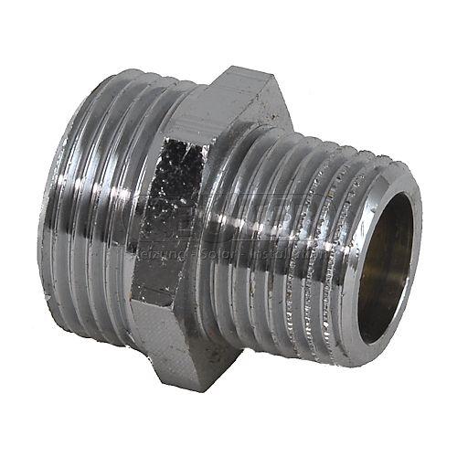 Messing Doppelnippel reduziert beidseitig Außengewinde verchromt.Anwendungsbereich für Heizung- Sanitär und Installation.